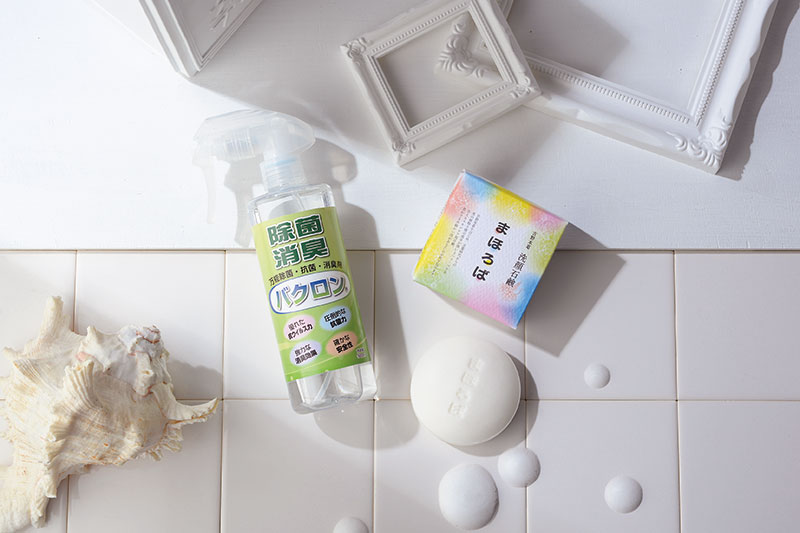 バクロンで家の中をしっかり除菌しつつ、コラーゲン以上の保水力を持つ「リピジュアR」配合の石鹸でしっかり手洗いも。