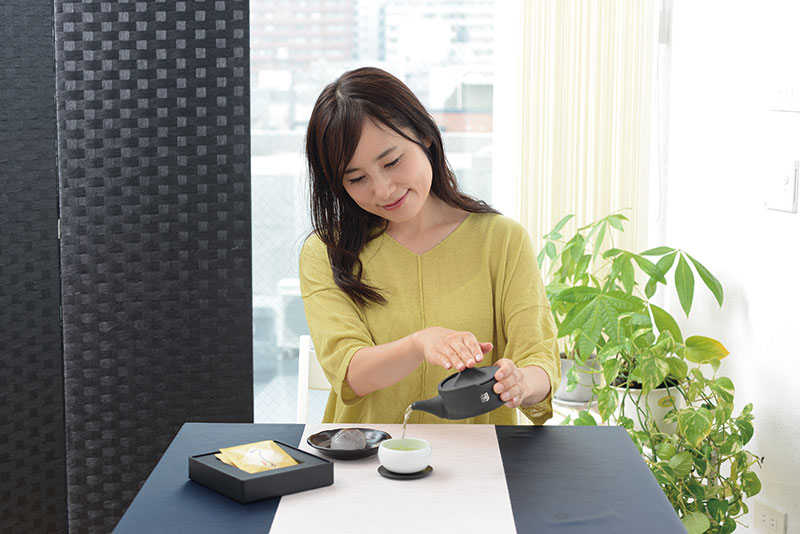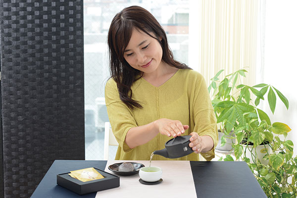 一般的な煎茶や玉露とは異なる甘くふくよかな香りと極上の旨みが特徴の希少なお茶です。そして、この白葉茶の旨味と甘味を最大限に引き出してくれるのが、炭素を入れ込んで焼くという焼成法によってつくられた、特殊な瓦素材の急須「粋月」。