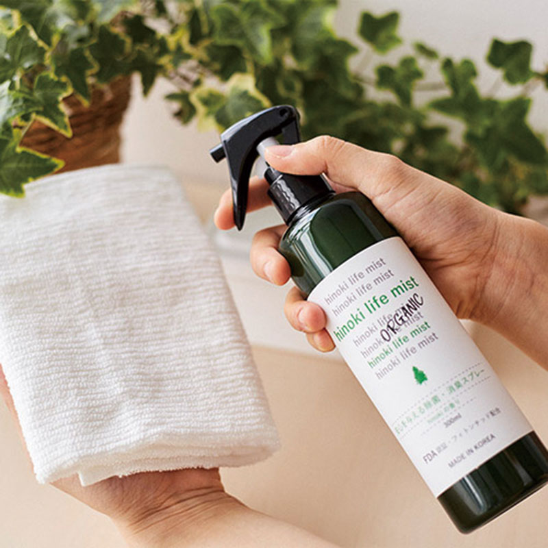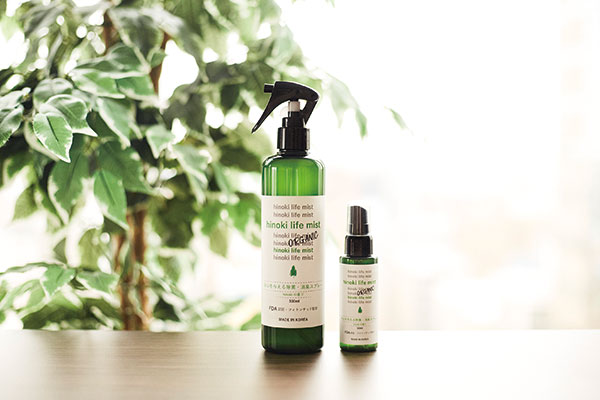 森林浴をしているような“リラックス効果”に優れた「ヒノキ」成分をベースに、あらゆる菌の繁殖を抑制する「フィトンチッドオイル」を配合した、天然成分100%の除菌・消臭スプレー「hinoki life mist(ヒノキ ライフ ミスト)」。