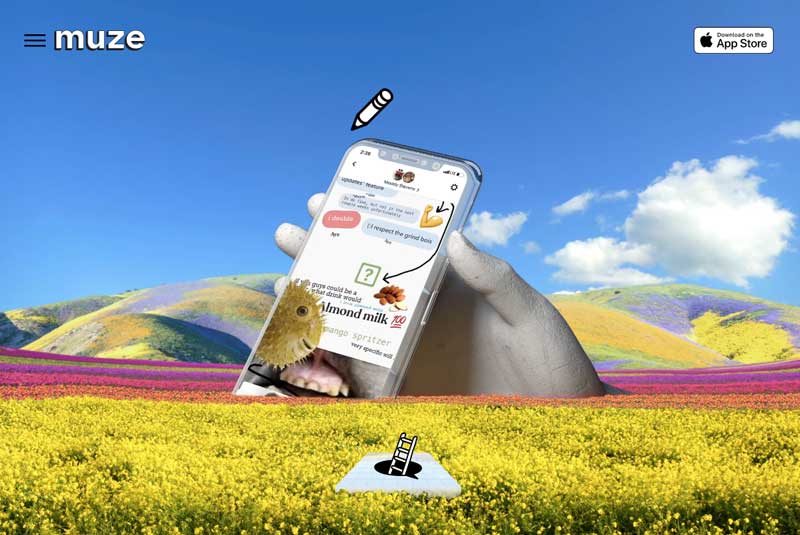 muzeは2018年創業のスタートアップ。NYに本社をおいています。muzeのサービスサイトも大胆なつくり。