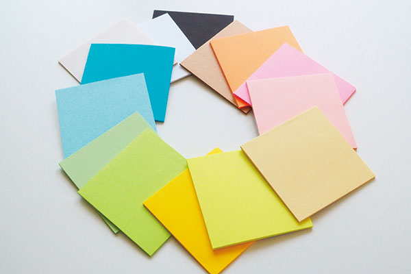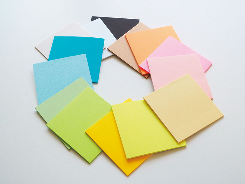 安全性の高い水溶性糊を使用し、カラフルな色調を揃えた付箋は、2枚めくって、のり面を貼り合わせて、コースターとして活用したり、アイデア次第で楽しめますよ♪