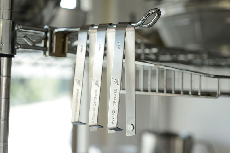 パウチオープナーは、使い終わった後、汚れや水分を拭って壁などのフックに引っ掛けて収納するのがベスト。