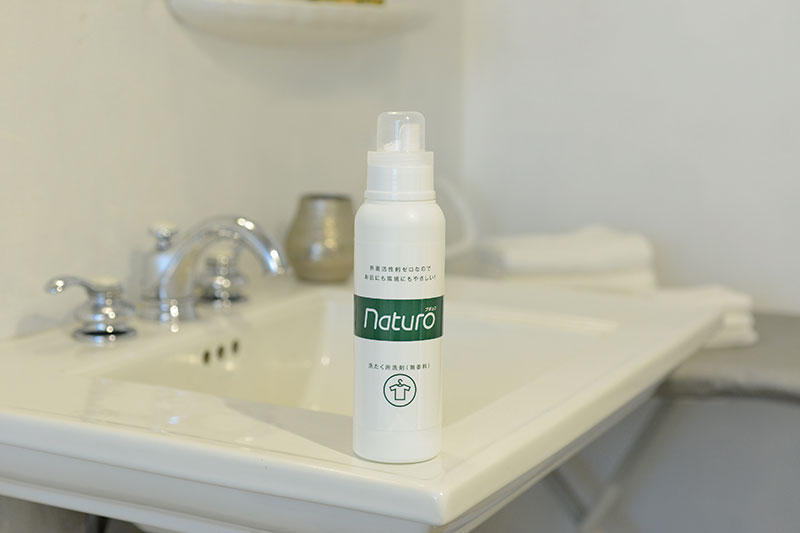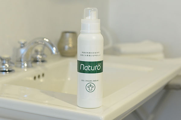 界面活性剤ゼロで作られた「Naturo洗たく用洗剤」は、ミネラルウォーターなどにも含まれる炭酸塩を配合。