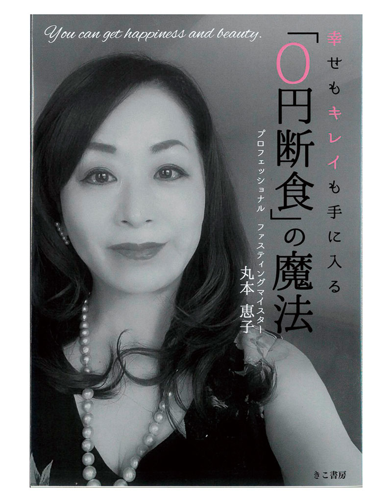 丸本さんの著書「幸せもキレイも手に入る『0円断食』の魔法」(きこ書房刊) 1,320円 総合医学医師の会統合医学健康増進会会長・宗像久男氏も大絶賛。