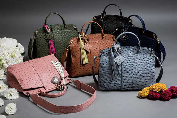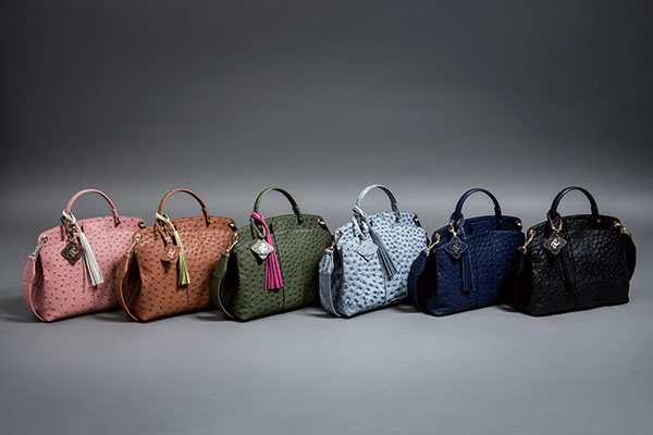 側面、底、ハンドル、ショルダー、チャーム、タッセルに至るまで、全てに高級品質のオーストリッチを施し、どこから見ても美しく仕上げられた逸品。カラーは6色で、22色展開のタッセルと組み合わせてカスタマイズが楽しめるのもうれしいところ。
