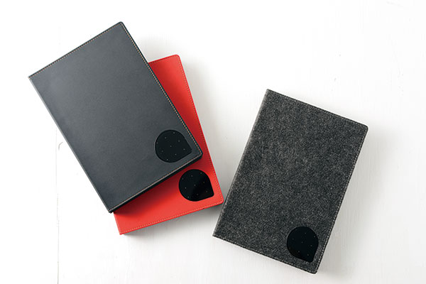 シンプルで上質なカバーは、PU素材の2色とフェルト素材の計3色展開。重さはわずか680gと軽量なので、常に持ち歩けて、移動中に溢れてきたアイディアをしっかりとメモして保存。ビジネスシーンでの活躍も期待できそうですね。