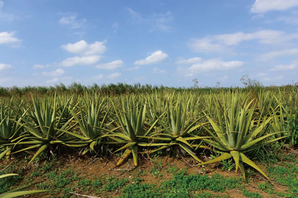 降り注ぐ太陽と大地の恵みを受けた沖縄のアロエ畑は完全無化学肥料のこだわりの土壌。