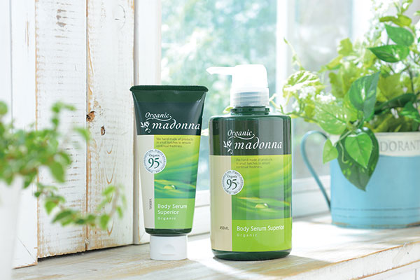 特に人気の「オーガニックマドンナ ボディセラムスーペリア」は、ボディだけでなく、フェイスのエイジングケアにも使えて、洗顔後のオールインワンクリームとして使える優れもの。主成分として配合されているアロエベラには、「アロエシン」という美白成分も含まれていて、実際に使用した多くの医療関係者から「透明感のある肌へ変化してきた!」と、口コミで広がり、愛用者が増え続けています。