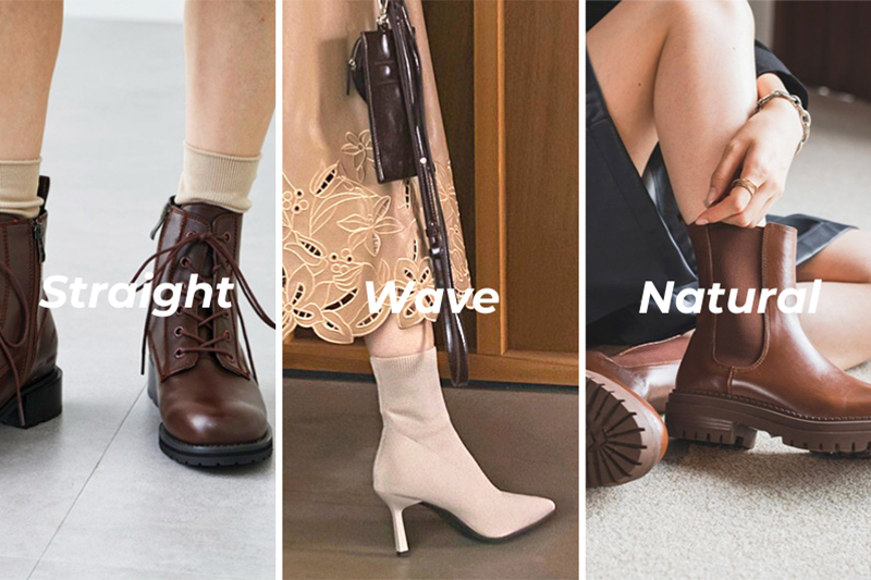 上半身が薄く下半身に重心がある骨格ウェーブさん。ボリュームのですぎる厚底や、くびれのない長靴デザインは足が短く太く見えてしまうことも…。ブーツのデザインは「薄い」「細い」を意識して、スッキリしたものを選びましょう。