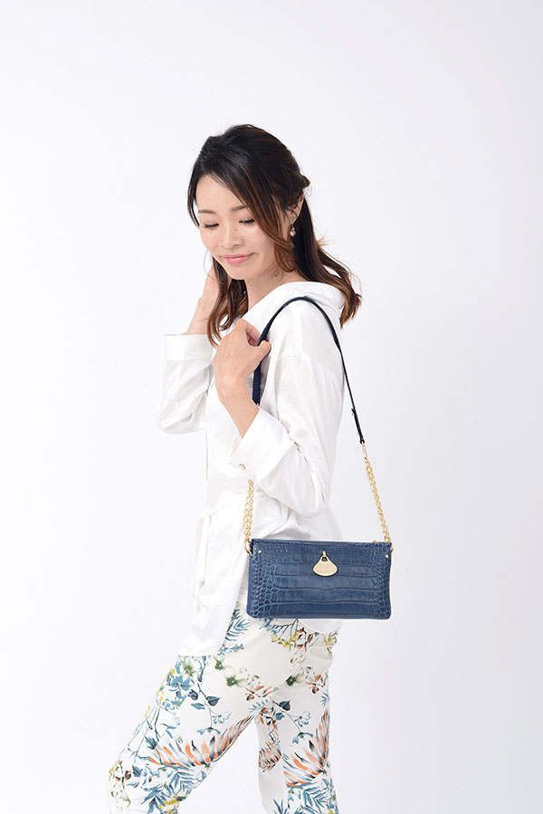 イタリアのセレブをイメージして作られた「フラット ウェンディ」のイチオシポイントは、何といってもクロコの型押しが醸し出す高級感。