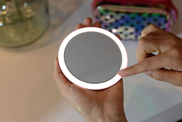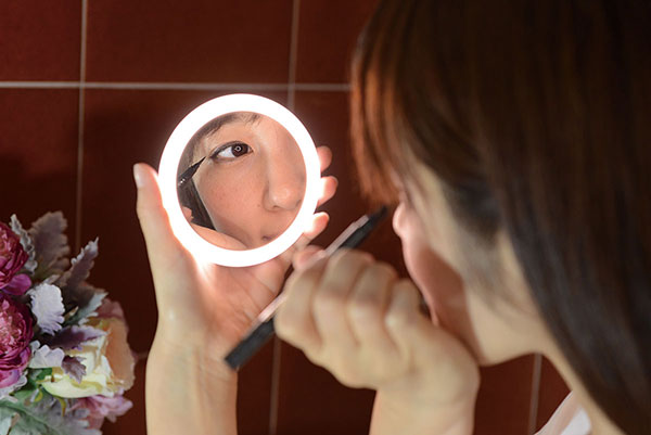 3段階で光の色温度を調節できるメイクアップミラーです。