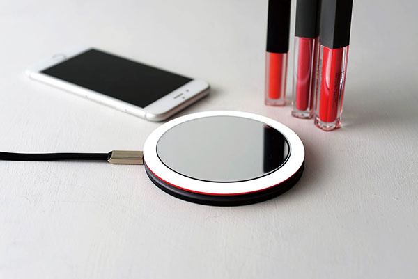 外出中のメイク直しも、おしゃれなミラーで気分が上がります! また、スマホに装着できるオプションパーツもあるので、自撮りでキレイなリングのキャッチライトを入れることもできますよ♪