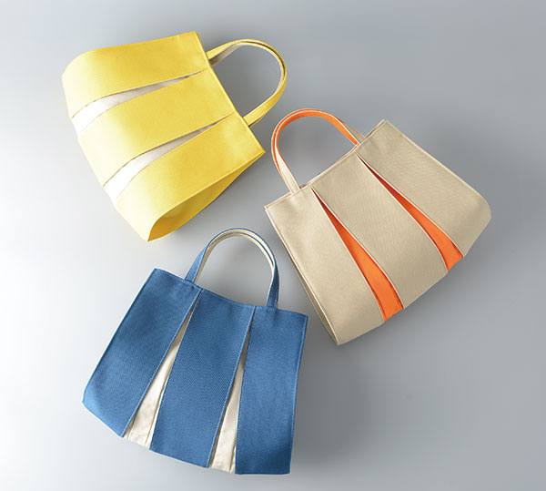 京都の職人技が随所に光る独創的なデザインの「ougi」は、バッグの裾を広げると内側から挿し色が覗く、粋でモダンなトートバッグ。