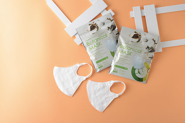 肌に触れる内側の素材に、オーガニックコットン100%不織布(日本製)を使用した、ふんわり柔らかな「ボタニカルマスク」。