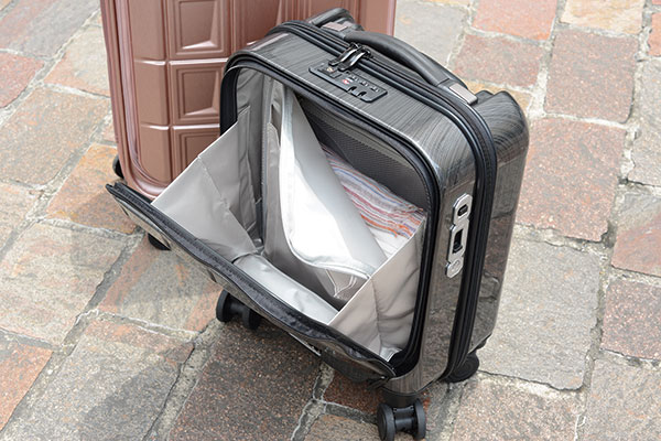 移動中でも立ったままラクに荷物が出し入れできるので、いちいちスーツケースを床に広げて荷物を出し入れする煩わしさから開放されて、一度使ったら手放せません!