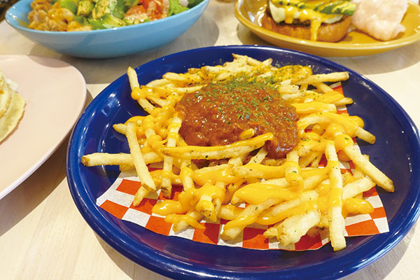 ハンバーガーには欠かせないフライドポテトにはいろんなフレーバーが用意されていて、今回は「チリチーズ」をオーダー、超定番の美味しさです。