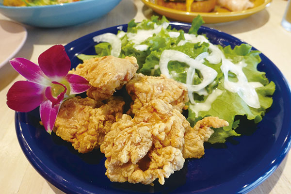 唐揚げの衣には餅粉を使用していて独特な美味しさ!