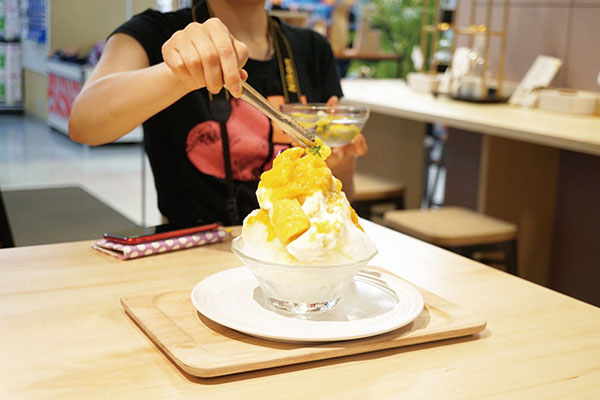 シロップはもちろん、果肉ソースや生クリーム、果物やブラックタピオカ、白玉にコーヒーゼリーなど、目移りしてしまうほどの素敵なトッピングが盛りだくさん。