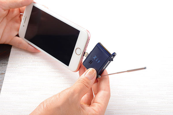ノートパソコンと一緒にカバンに常備しておけば、Lightning端子に接続するだけでいつでも好きなときにパケットを使わずに番組を楽しめます。