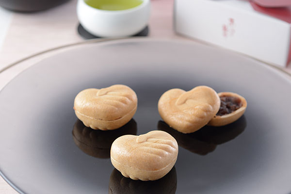 握手の形にデザインしたコロンと小さな最中は、見た目のかわいさはもちろん、商品に込められた想いにも注目してほしい逸品。