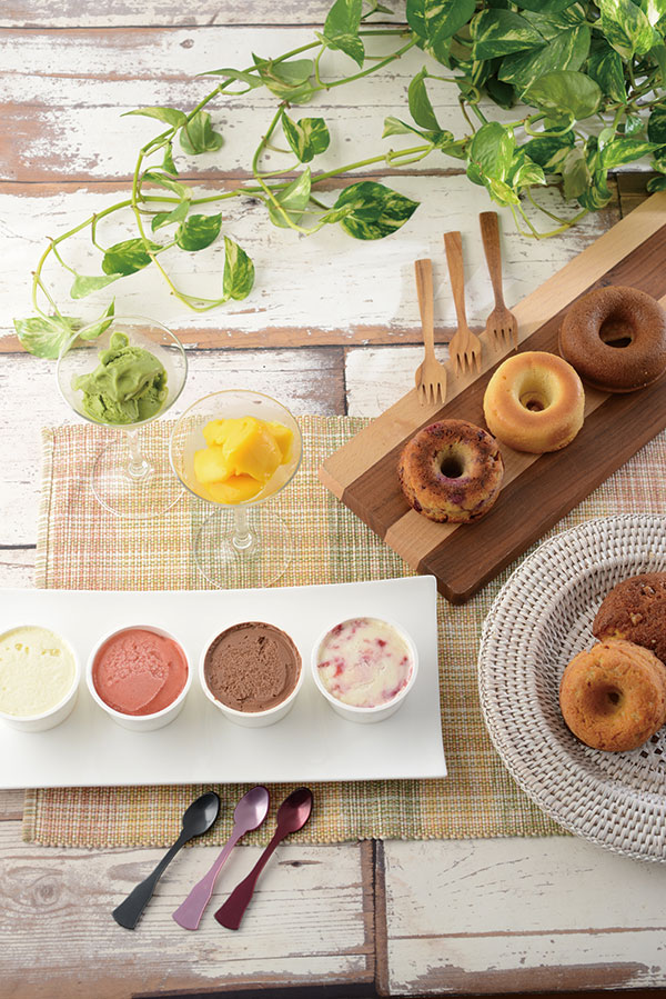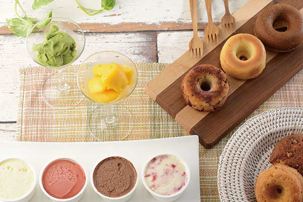 砂糖や合成甘味料を一切使用せず、天然の甘味料「羅漢果(ラカンカ)」や「エリスリトール」、「オリゴ糖」を使って糖質を4割〜6割以上カットした、焼きドーナツとアイスクリームの店「Mikans Bake Shop」。