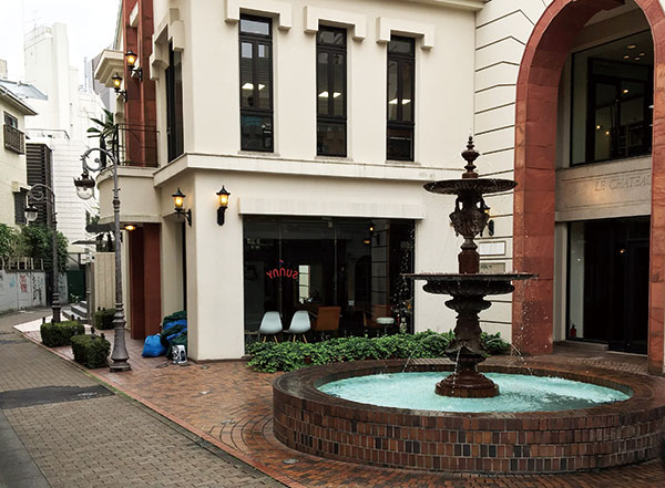 こじんまりとした噴水広場は、人通りの多い明治通りまでの休息地点としても有効かも。