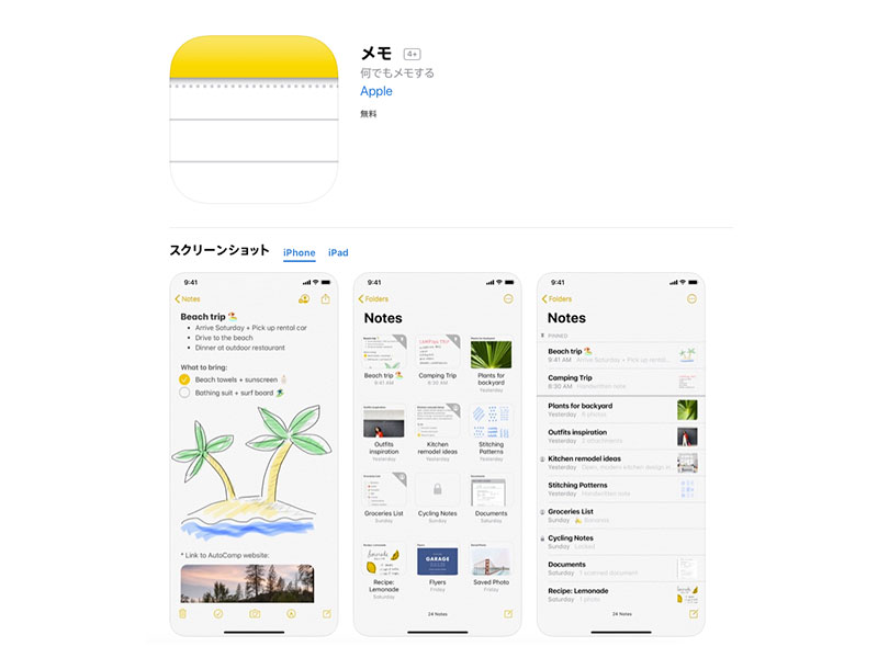 『Evernote』に浮気したこともありましたが、iOS純正の『メモ』の方がスマホでもパソコンでも起動が早いので『メモ』に戻しました。