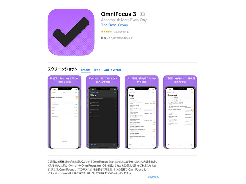 思い浮かんだタスクをとりあえず書いて、それをやるべきか、いつやるべきか?とタスクを振り分けていく「GTD」っていうワークフローの考え方で作られたタスク管理アプリです。
