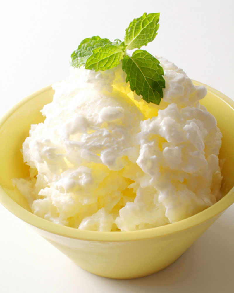 2 ラップ、または蓋をして冷凍庫に入れて冷やし固める。 途中1〜2時間おきに取り出してかき混ぜ、できあがり!