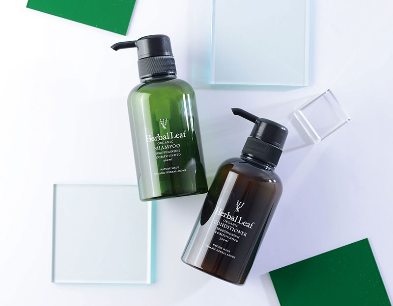 上質な精製水にこだわったシャンプーとオーガニックシアバターを贅沢に配合したコンディショナーは、髪や肌と同じ弱酸性で、32種類の植物エキスヘアケア成分を配合。