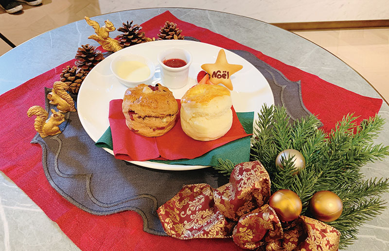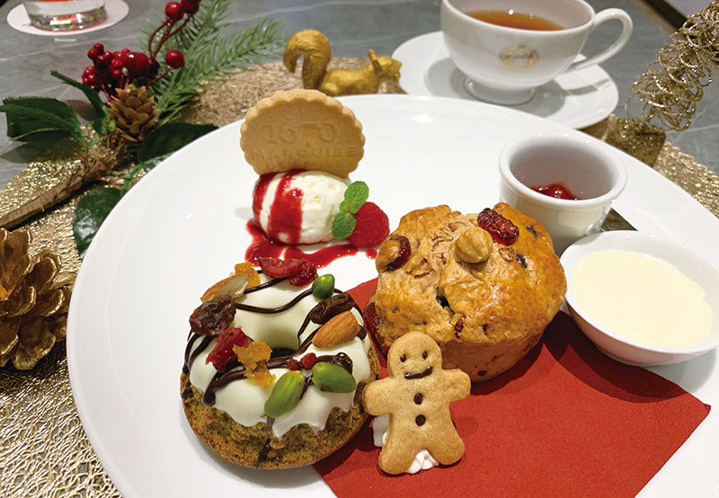 そしてカフェの限定メニュー『クリスマス・クリーム・ティー』はクランベリーとヘーゼルナッツの入ったクリスマスベリーのスコーンとティーのセット。