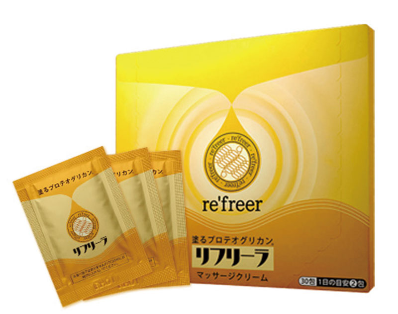 おすすめは、新軟骨由来保湿成分プロテオグリカンに、N-アセチルグルコサミンとコンドロイチンを黄金比ブレンドした、「リフリーラ」。