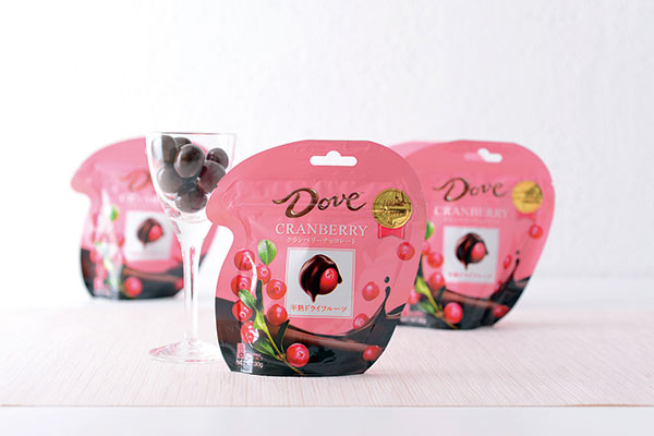なめらかな口どけチョコレートで、クランベリーの果肉を包み込んだ新感覚チョコレート「ダブ(TM)クランベリー」。
