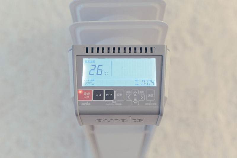また、標準装備されている室温センターがお部屋の温度を測定して、設定温度と比較しながら自動でヒーターを切り替えて運転してくれるので、無駄な電力を使うことがありません。