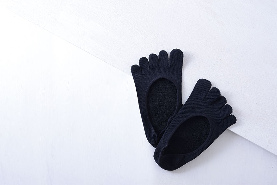 マニラ麻を原料に和紙を作り、熟練工の技術によりその和紙を加工した糸を使って作られた5本指仕様のフットカバーは、汗の吸水・速乾に加え、消臭力が高いのが特徴。