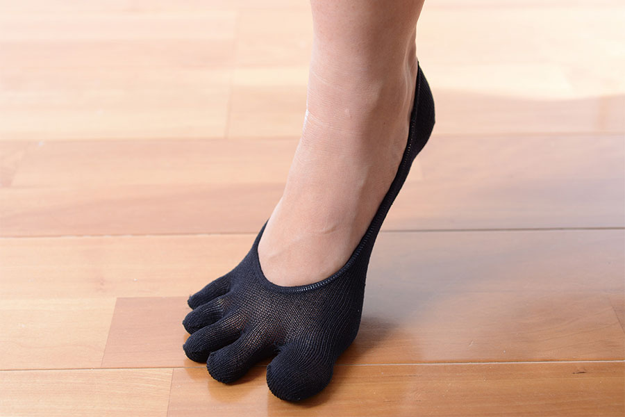 また、5 本指仕様なので、靴の中でも脱げにくく、一日中履いていてもストレスがないこともうれしいポイント。さらに、通常のフットカバーの約1/2 という軽さを実現。日本独自の和紙づくりの技術を活かした機能性アイテム。