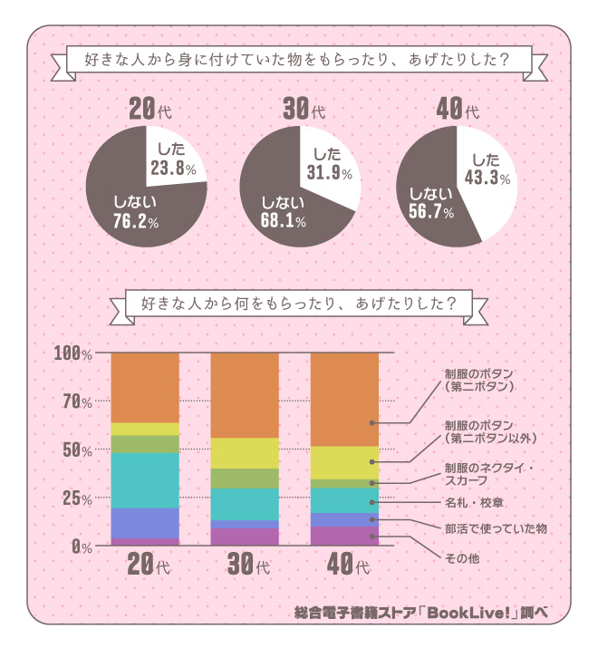反対に若い世代では、「名札・校章」が人気に。名札の裏に好きな人の名前やメッセージを書いて渡すのが最近の風習だそう!