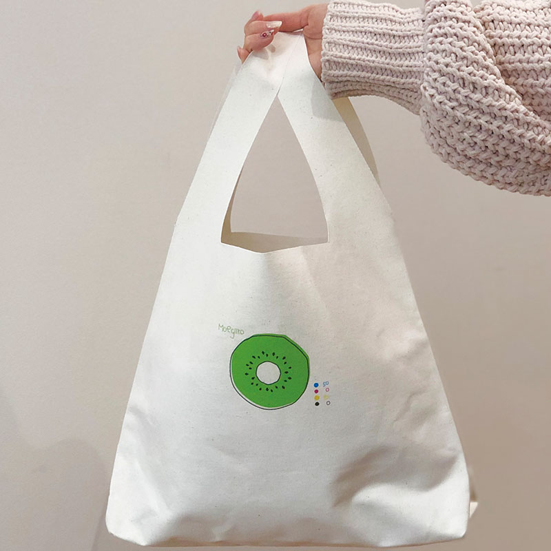 「のんビニ(NoVinyl)」は野菜や果物をかわいくデザインしたエコバッグです。キャンバス端材を縫製し、ちょっとした買い物に使えるエコバッグになりました。