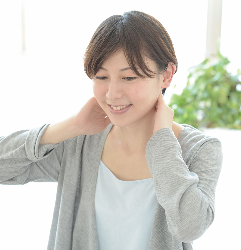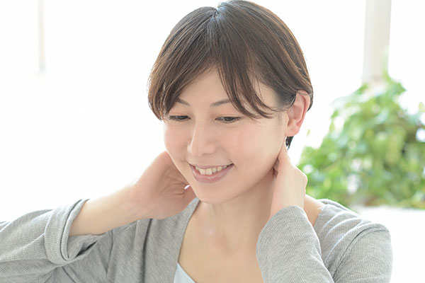 まずは、お風呂上がりなどの血流の良い状態で、耳たぶ回しや肩甲骨を意識した肩回しをゆっくり、しっかり、動いている意識をしながら行うことで癒着やこわばりがとれてきます。