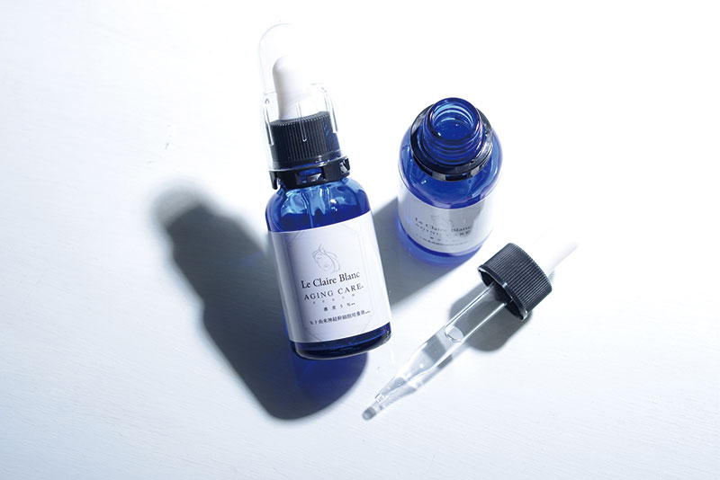 多くが脂肪幹細胞を使用している中、希少で高品質な神経幹細胞エキスを5%という高い比率で配合した美容液「Le Claire Blanc」。