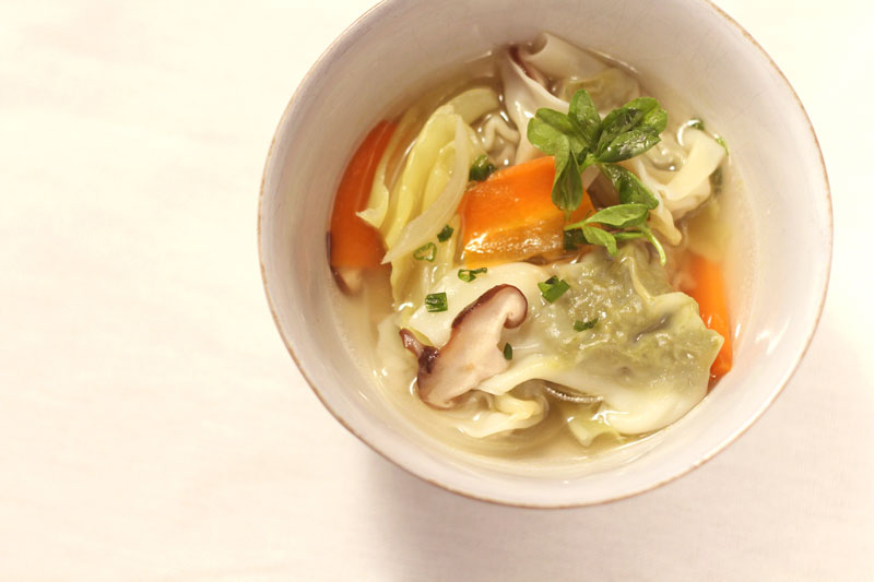 ビタミン、ミネラル、食物繊維が豊富に入ったミドリのワンタンスープ♡