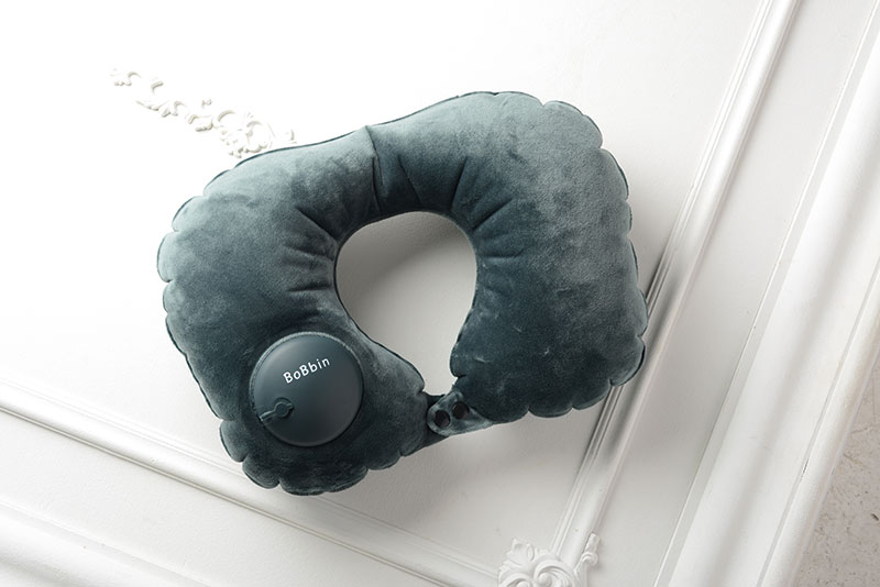 今まで空気を入れて膨らませる携帯タイプのネックピローはたくさん試してきましたが、「ボビン」は口で空気を入れずに手で軽くポンプするだけなので、とっても衛生的で、もう手放せないレベル。