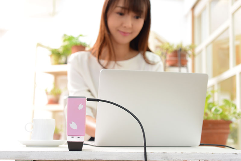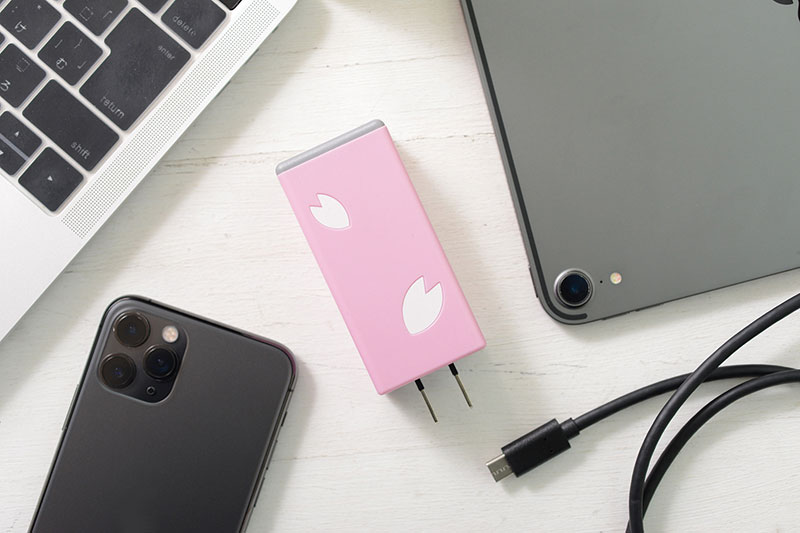 パールピンクが上品な「SAKURA」は、立体的な花びらのデザインが特徴的で、無機質になりがちなガジェット周りを華やかに演出してくれて、その実力は、最大出力65ワットという、通常の付属アダプターの約2倍のパワフルさ。
