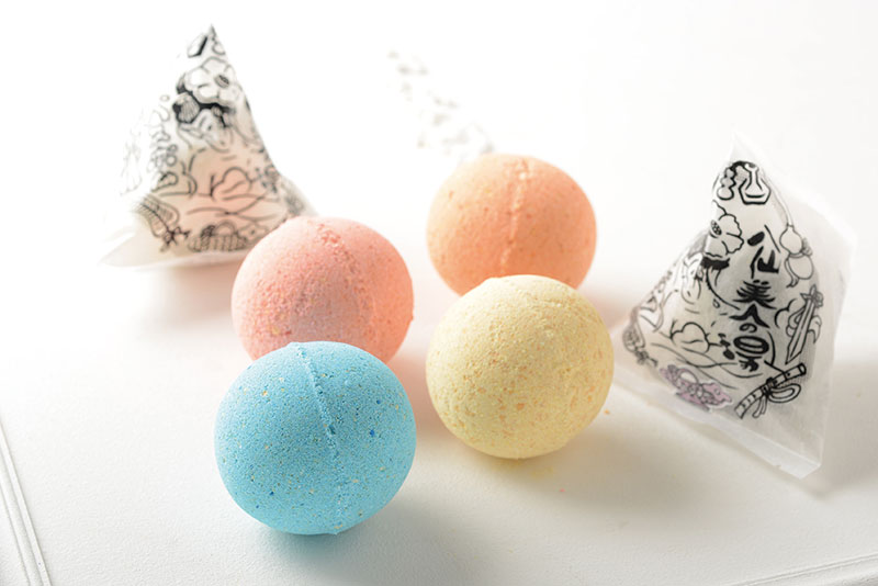 カラフルで可愛らしい酒粕バスボム「八仙美人の湯」は、安永4年創業の老舗酒造が名酒「八仙」を搾った酒粕をベースに、保湿成分のプロテオグリカンや生姜パウダー、粗塩などを配合した、お肌にうれしい浴用化粧料。