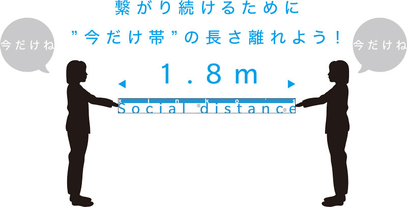 新型コロナウイルスの感染が世界的に続く中、予防対策として広まっている行動指針のひとつです。人との距離を保つ、接触は避けるなど普段意識はしていても、どのくらい間隔をあければよいものか難しいですよね。