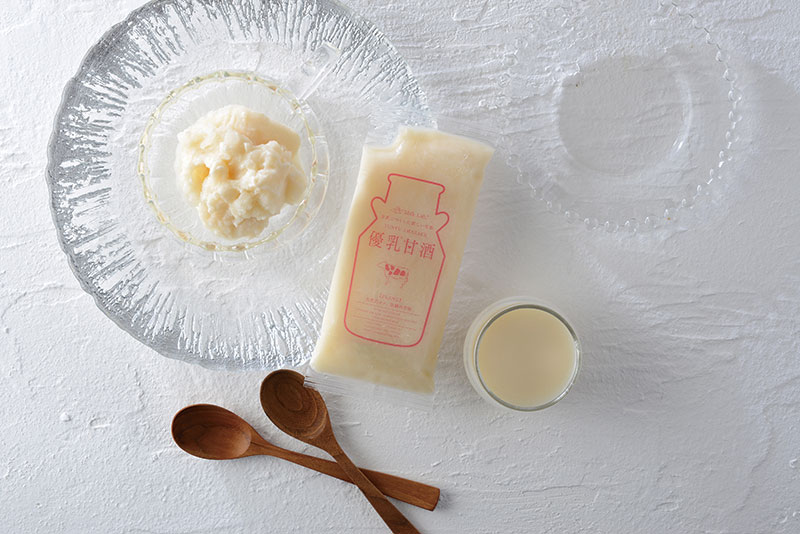 砂糖や添加物、防腐剤を一切使わず、牛乳のタンパク質を低温でじっくりと遊離アミノ酸にまで分解させることで作られた「フローズン優乳甘酒」。
