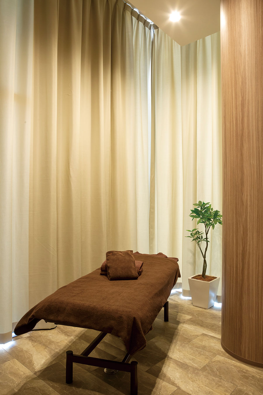新鋭のマシンを使用した、「SLENDAGINZA」独自のメソッドでボディメイクをおこないます。アロマが薫る個室空間で、リラックスして施術を受けながら、理想的なボディラインを作っていくことができます。