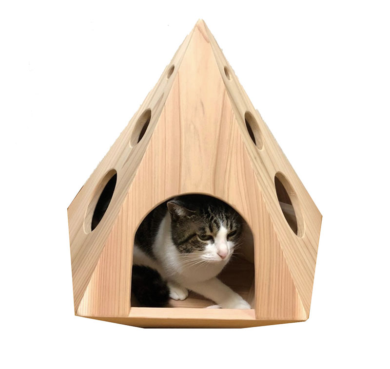 他にも六角形タイプや丸いねこベッドなども人気。使うほどに木の味が出て愛着がわいてきます♪
