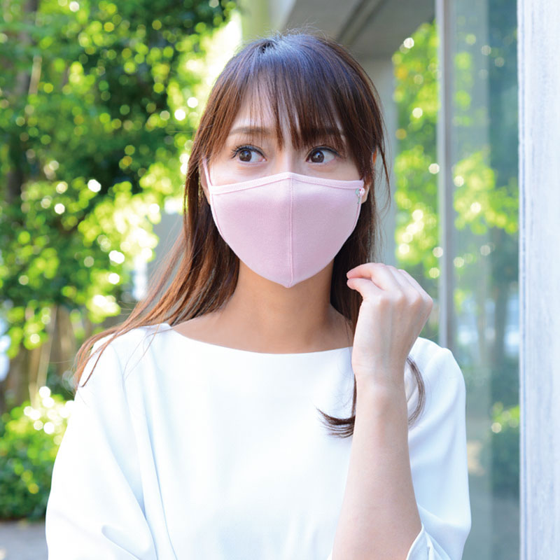 綿100%日本製ジャージー素材を国内で立体裁断している同社のマスクは、鼻からあご先、頬の複雑な曲面にもぴったりとフィットするフォルムが特徴的。着用するだけで小顔効果も期待できる女性にはうれしい仕様のオシャレマスクです。