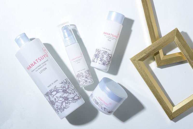 その花びらに舞い降りた朝露のようにみずみずしい素肌へと導いてくれるのが、植物の恵みいっぱいのボタニカルスキンケアシリーズ「HANATSUYU」。